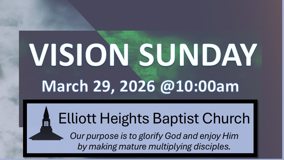 We would like to invite you to Elliott Heights Baptist Church. Our Fellowship time is at 9:30am which includes tea & coffee. Then at 10am, we have our English Sunday service.